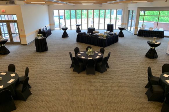 Make a lasting impression in this elegant and highly adaptable venue. A fully retractable wall of windows fills the room with natural light and opens onto a spacious private patio, offering breathtaking views of the TRU Campus Commons and the surrounding Kamloops mountain landscape. Perfect for creating a seamless indoor–outdoor atmosphere, this versatile space is perfect for spirited social gatherings, engaging conferences, standout special events, and unforgettable weddings.